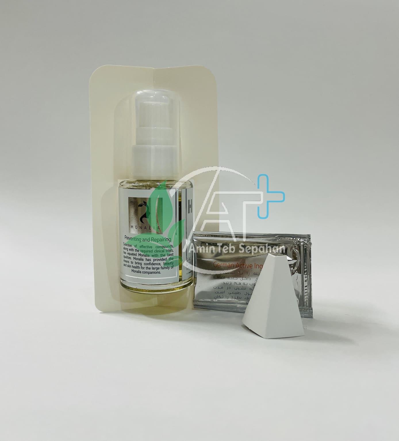 سرم تقویت موی مونالیا به دلیل بهبود ضخامت مو لنگر اندازی موها را کاهش می دهد و از ریزش مو جلوگیری می کند. این سرم با کمک ،کافئین اسید لوریک نیاسین آمید و فناوری RBN اختصاصی خود باعث افزایش ضخامت مو و کاهش ریزش مو می شود.