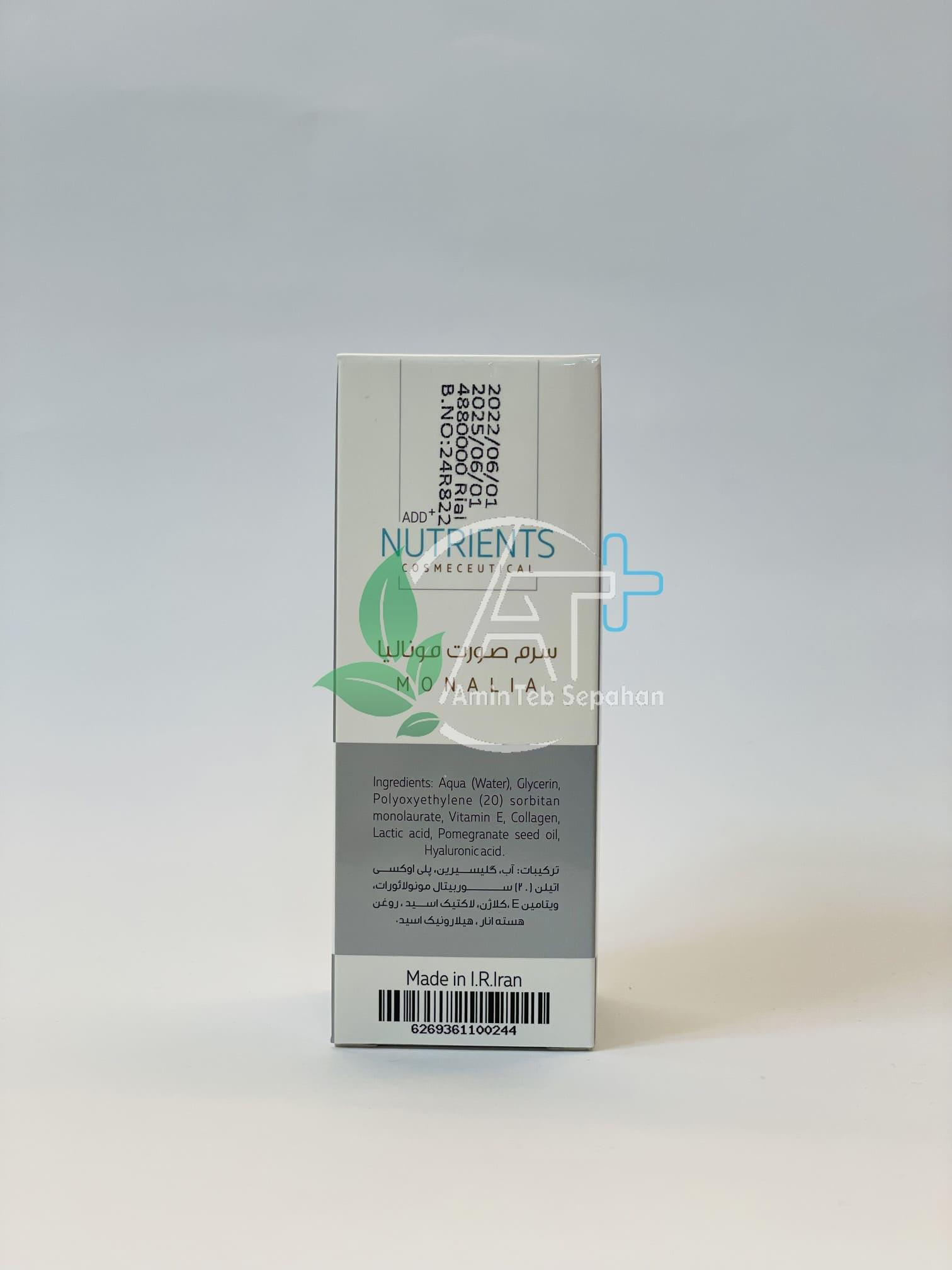 افتادگی پوست صورت باعث پیر نشان داده شدن آن می‌شود. سرم لیفت مونالیا اسکین پلاس با دارا بودن ویتامین E، عصاره آلوئه ورا، NMF و پیش ماده‌های طبیعی بازسازی کلاژن و الاستین باعث جلوگیری از افتادگی پوست صورت می‌شود.
