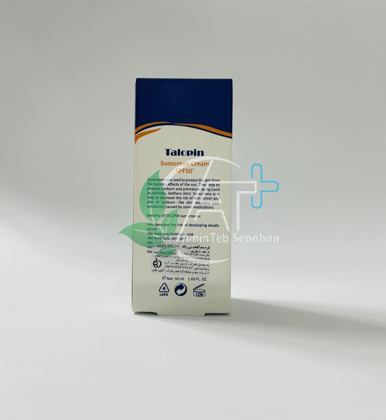 کرم ضد آفتاب تالوپین بیشترین محافظت را در برابر اشعه UVA و UVB را تضمین می کند. همچنین با ساختاری سبک و در عین حال به دلیل داشتن مواد مرطوب کننده و ضد چروک پوست را نرم ولطیف می نماید.