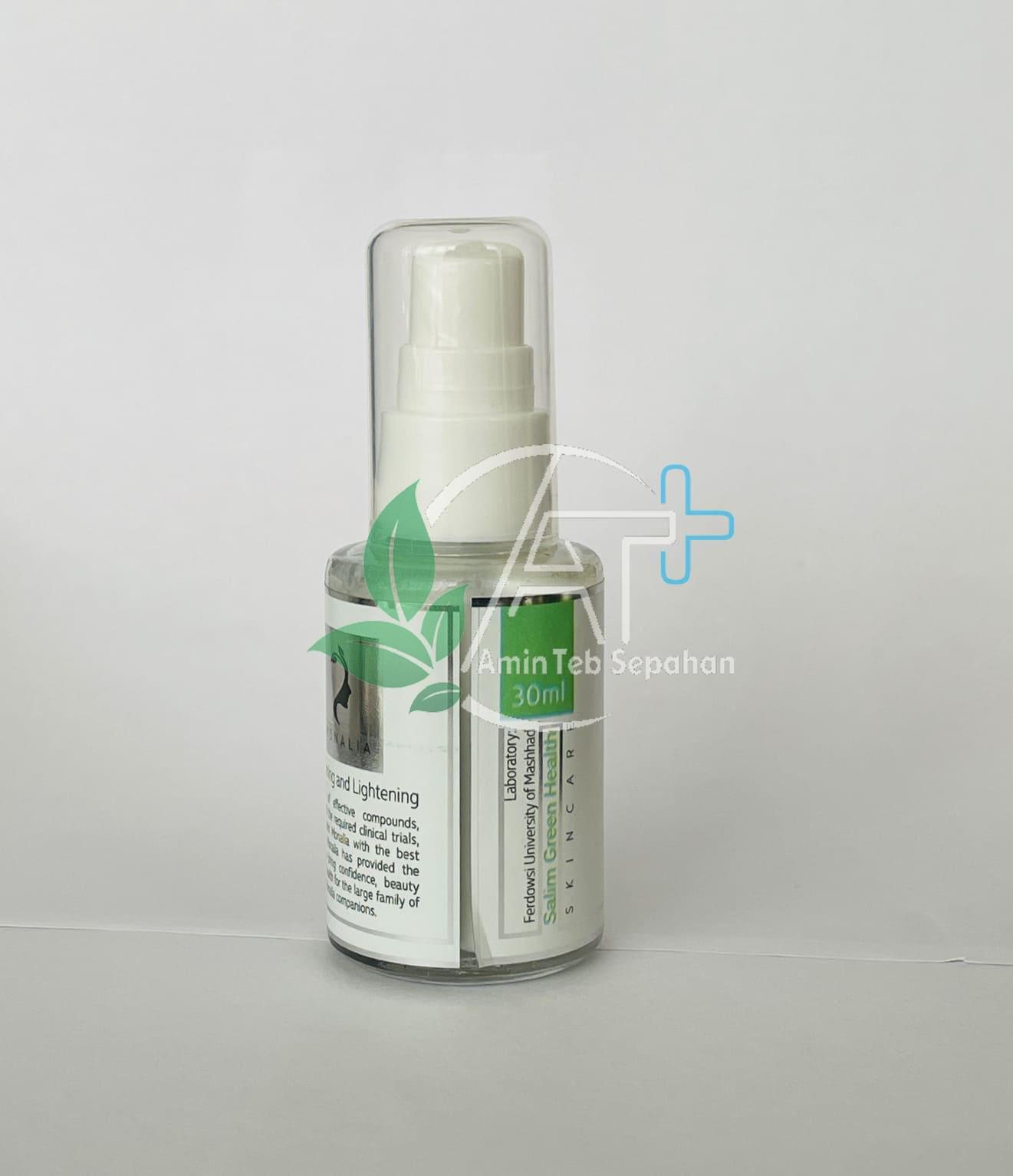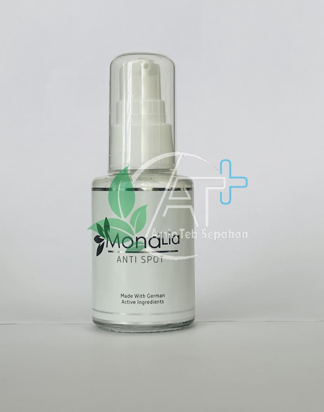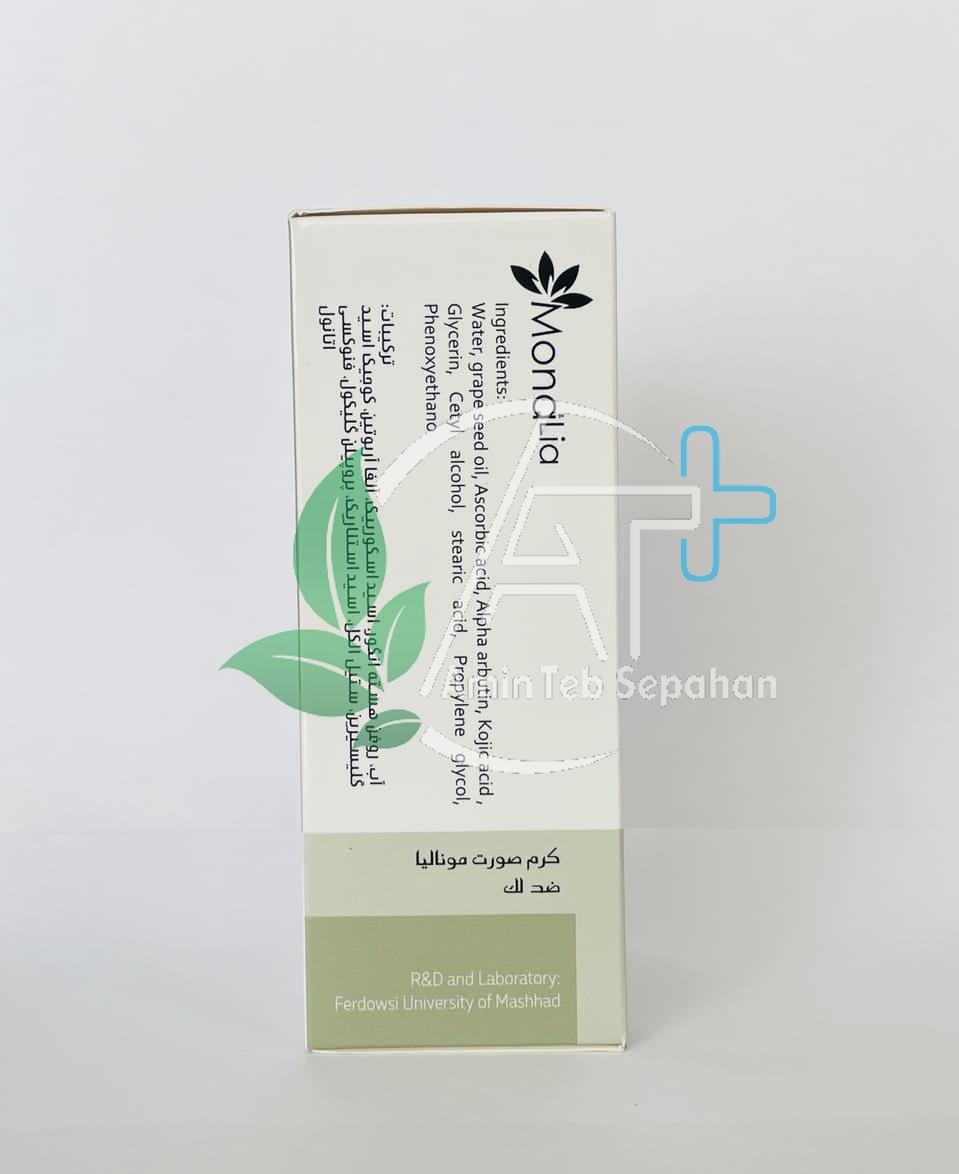 با گذشت زمان لکههای قهوه ای روی پوست ظاهر میشود. کرم ضد لک مونالیا حاوی آلفا آربوتین، کوجیک اسید نیاسین آمید و سایر ترکیبات ارگانیک است. این کرم ناهنجاریهای رنگدانه ای را که به دلیل افزایش سن و پیری و آسیب نوری است کاهش میدهد.