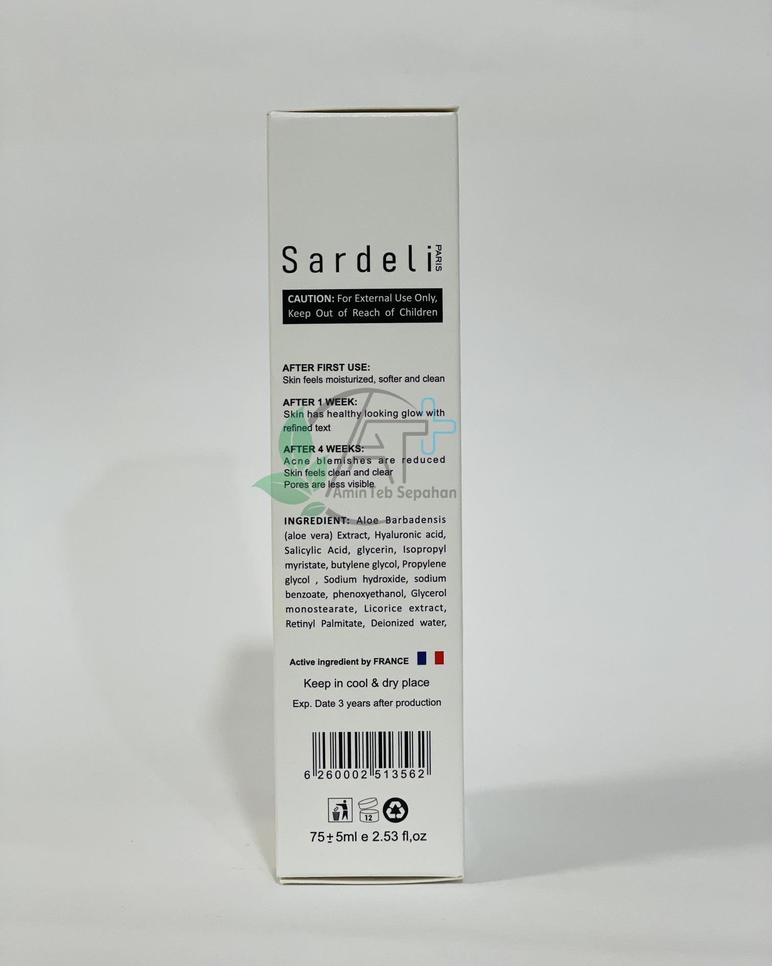 يحتوي جل كريم ساردلي على Salicylic Acid، مستخلص Aloe Vera و Licorice Extract، ويُعدّ خياراً فعالاً لعلاج الحبوب الموضعية والتخفيف من البقع الناتجة عنها.