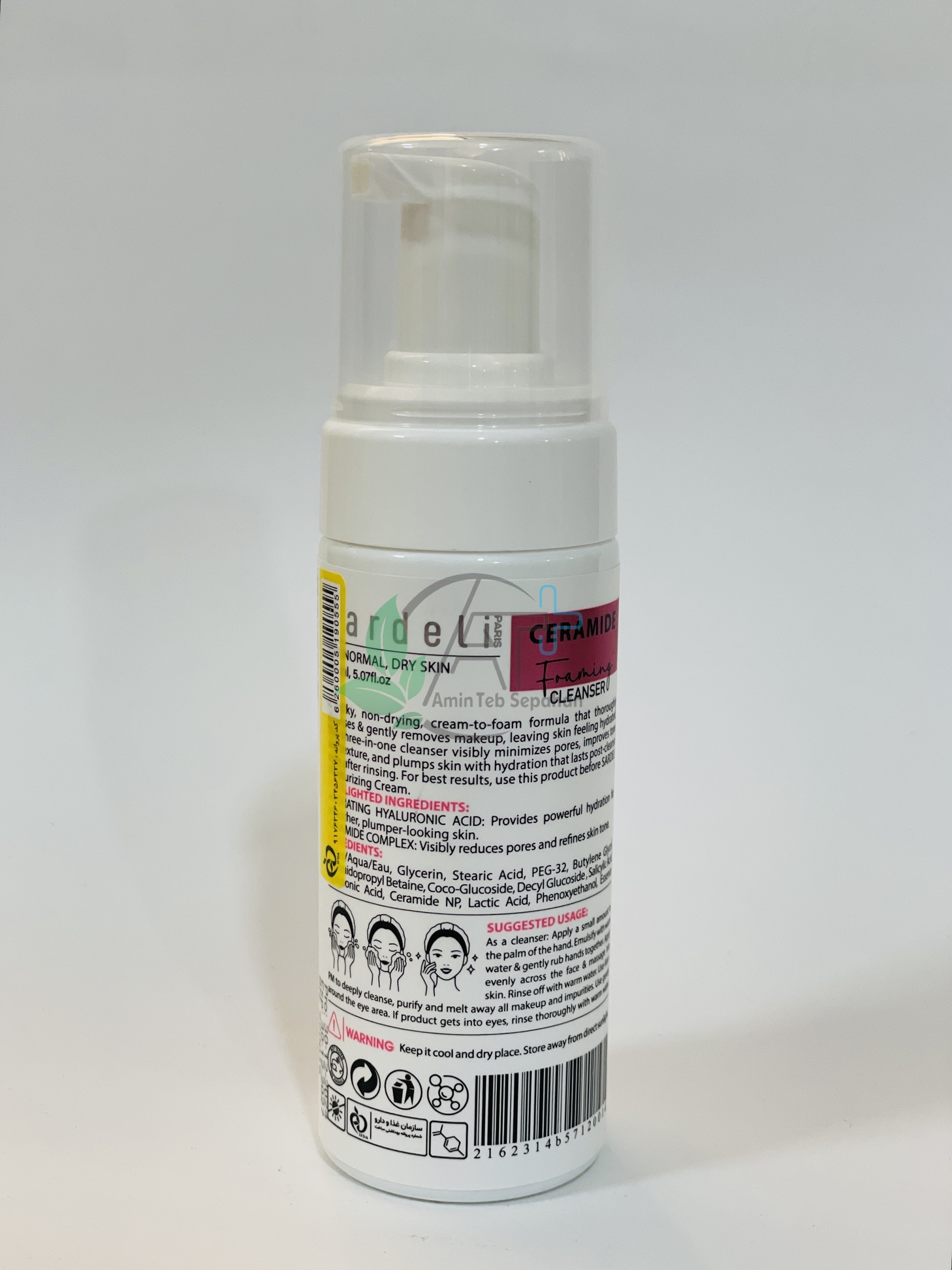 رغوة منظفة بالسيراميد، مناسبة للبشرة العادية والجافة، بتركيبة حليبية، غير مسببة للجفاف، تتحوّل إلى رغوة كريمية تنظّف المكياج بالكامل بلطف وترطّب البشرة. هذا المنظف الثلاثي الفعالية يقلّل بوضوح من حجم المسام، يحسّن اللون والملمس، ويرطّب البشرة بعمق بشكل يدوم حتى بعد الغسل. يحتوي على حمض الهيالورونيك لترطيب قوي للبشرة ومركّب السيراميد بخصائص مهدئة لإزالة الهالات السوداء والتجاعيد وعلاج جفاف البشرة، مع تأثير مرطّب وملطف، مضاد للبكتيريا والالتهابات الجلدية، ويعيد شباب البشرة.
